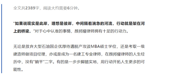 不如意乃人生常态,为了弥补遗憾,在石油系统工作五年后的颜邦耀律师,毅然选择打破“铁饭碗”,再次回归校园,脱产攻读MBA硕士学位。也正是这份敢于挑战和破釜沉舟的勇气,给了颜邦耀律师极大的启发,也让他收获了一种敢于挑战全新领域的勇气。