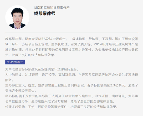 在他代理的另一起被告建筑企业的案件中,因挂靠原因被告方手中完全没有证据。最初案件可谓是一筹莫展,但颜邦耀律师精细研究证据,运用相关领域的专业知识,凭借着敏锐的洞察力,发现了其中一个细微的破绽,找到了原告为了起诉故意伪造银行流水的痕迹。最后颜邦耀律师申请法院调查取证,证实了当时的推测。从小处着手,让原本束手无策的案件瞬间扭转,最后完全胜诉。