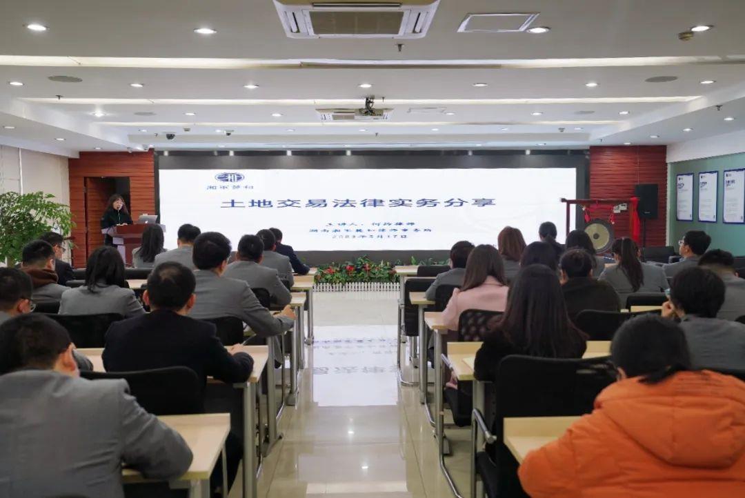 2023年3月17日下午,湖南联合产权交易所有限公司为进一步提升职工法律素养,特邀湖南湘军麓和律师事务所路明团队何玲律师、罗康律师,为联交所全体职工开展《土地交易法律实务分享》及《知识产权法律知识分享》讲座。