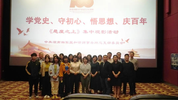 律师事务所总支部委员会组织开展了以“学党史守初心悟思想庆百年”为主题的红色电影观影活动。以光影故事呈现党的百年奋斗史,引导广大党员、群众加深对党的历史的理解和把握,感悟革命先烈初心使命,让红色基因、革命薪火代代相传。