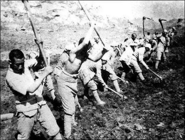 抗日战争中的大生产运动是克服抗日根据地困难的重要一环,总方针是“发展经济,保障供给”。1939年2月,当困难刚刚露头的时候,毛泽东就发出了“自己动手”的号召。1941年,党中央再次强调必须走生产自救的道路。同年春,八路军第三五九旅开进南泥湾实行军垦屯田。他们发扬自力更生、奋发图强的精神,使昔日荒凉的南泥湾变成了“陕北的好江南”。