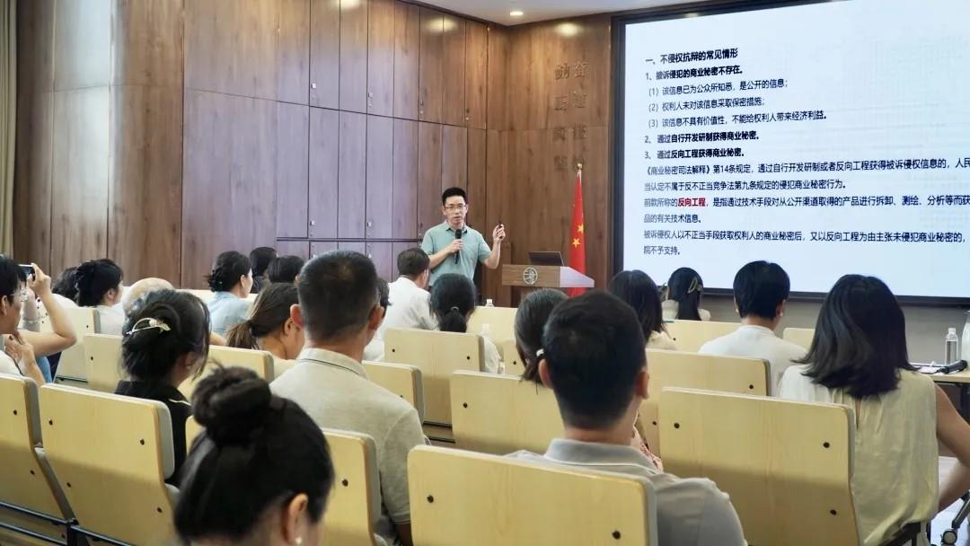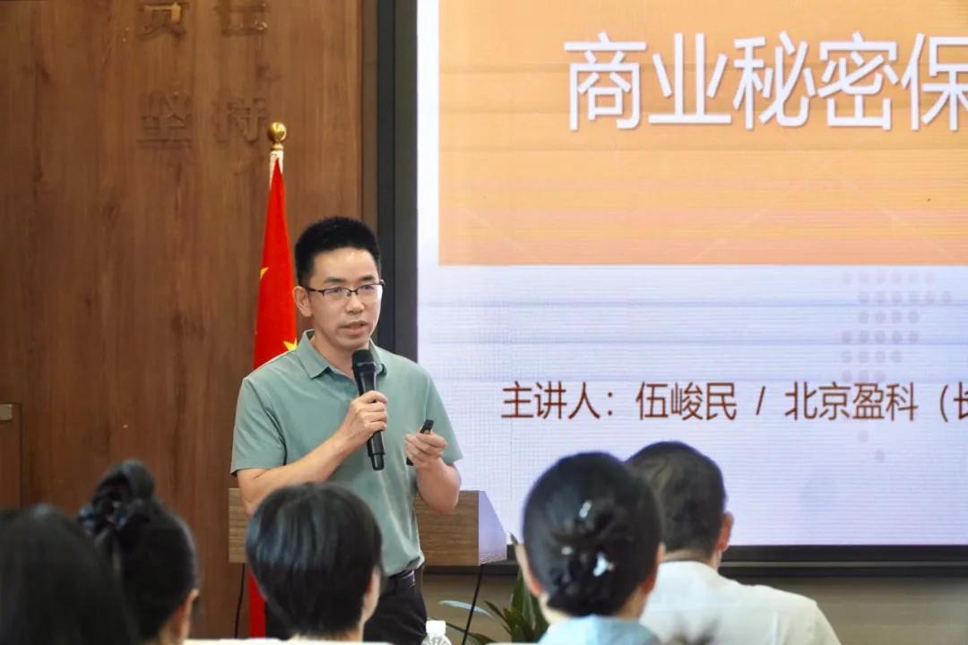 本次培训特邀北京盈科(长沙)律师事务所高级合伙人伍峻民律师担任主讲人。培训中,他围绕商业秘密保护八大核心模块展开深入讲解。从商业秘密的法律定义与范围界定,到我国商业秘密法律保护体系的演进;从商业秘密“秘密性、价值性、保密性”三要件的司法认定标准,到商业秘密案件的举证规则、损失计算方法与司法鉴定要点;从侵权纠纷中的常见抗辩事由,到职工“跳槽”场景下的商业秘密保护策略,层层递进、逻辑清晰。伍峻民律师还结合最高人民法院典型案例与实务操作难点,用通俗易懂的语言拆解复杂法律问题,为参会人员提供了极具指导性的实务解决方案。
