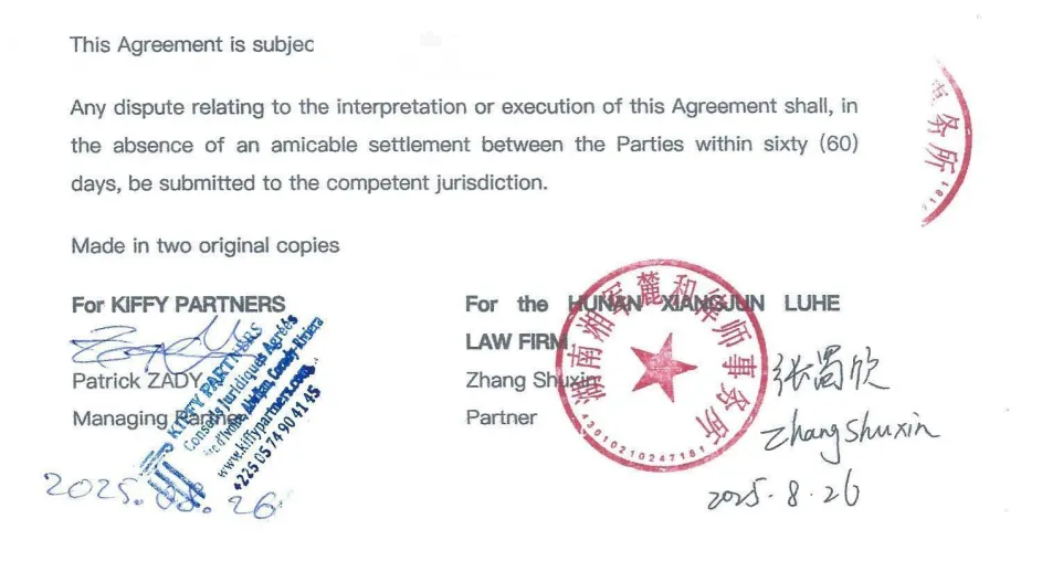 近日,湘军麓和律师事务所与科特迪瓦Kiffy Partners律所及肯尼亚Kanaga&Associates律所分别签署战略合作协议。我所涉外法律事务委员会主任、长沙市律师协会涉外专业委员会副主任张蜀欣律师全程主导合作洽谈与推进工作,最终成功促成此次跨国合作落地。此前,湘军麓和所已与两家律所就中非跨境法律事务开展过业务合作,此次战略协议的签署,是对前期良好合作的深化与升级。