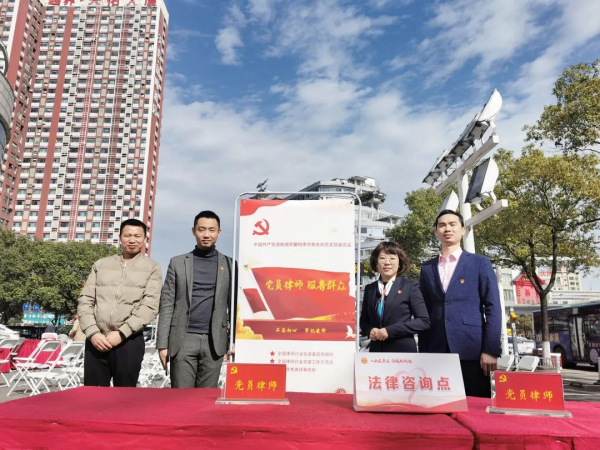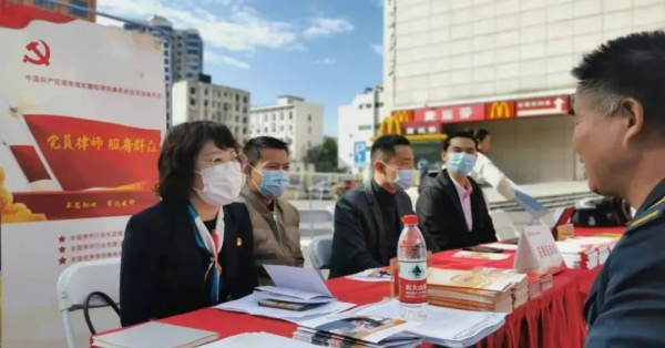 律师事务所受邀在现场开设法律服务免费咨询台,我所党员律师钟银意、熊阳勤、邵帅等免费为参加活动的新就业形态劳动者们提供