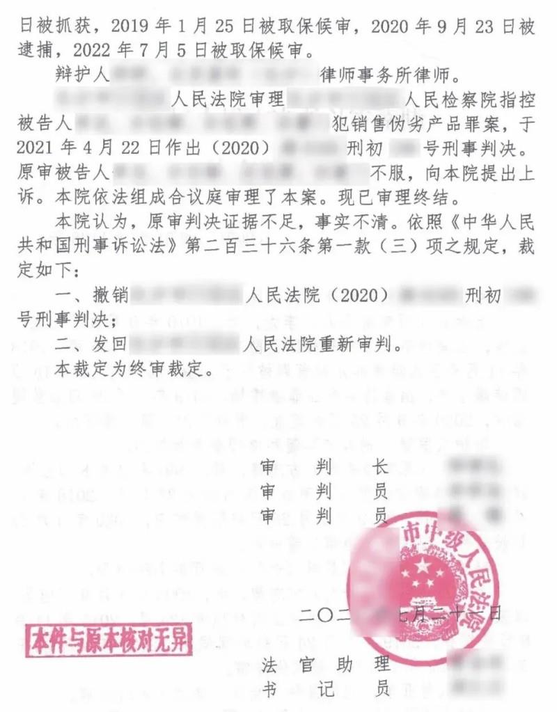▲辩护后,案件成功发回重审