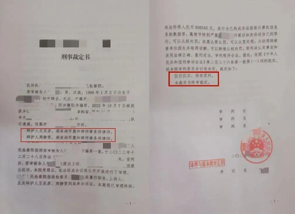 二审法院开庭审理后,经该院审判委员会讨论,采纳了辩护人关于抗诉构成诈骗罪不当,应认定为非法获取计算机信息系统数据罪的辩护意见,驳回抗诉,维持原一审判决。